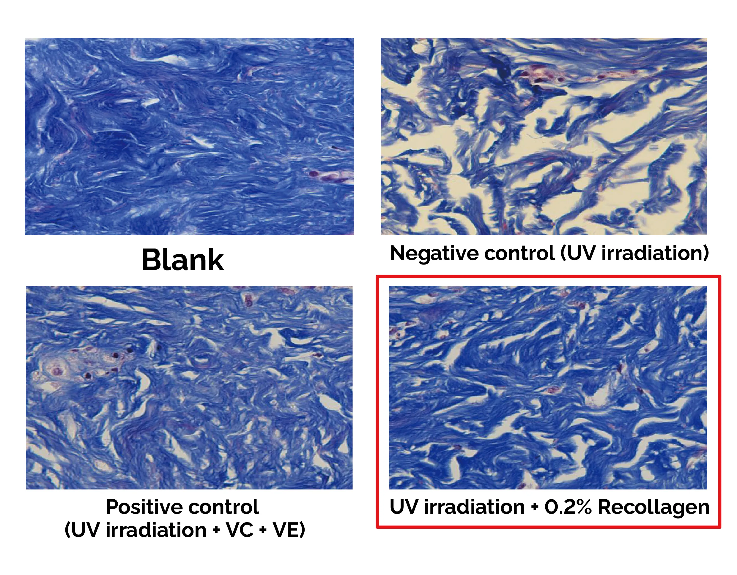 3. Recollagen with a concentration of 0.2% significantly increased the collagen fiber content.